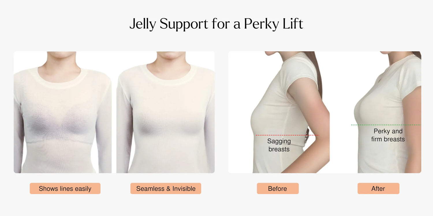 Our ultra soft jelly material shapes, supports, and stays invisible under clothing all day.